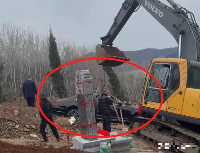 从现场的视频中不错看到,这场埋车庆典十分高调,不仅挖掘机现场功课,而且到场的东说念主数也不少。