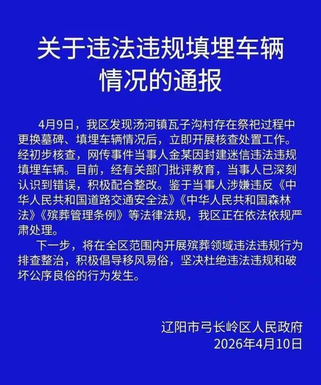 当事东说念主金某因为封建迷信的想想影响,才本质了填埋车辆的当作,况兼他的当作已经涉嫌多项违纪。